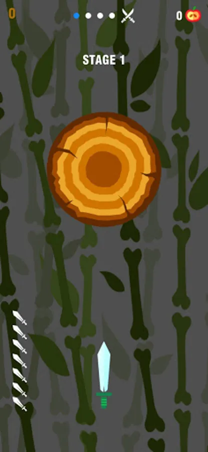 Throw the knives into the logs to break them. Slash the apples and unlock new knives. Each 5th stage is defended by a boss – beat them to get exclusive knives!