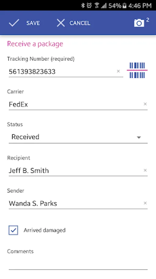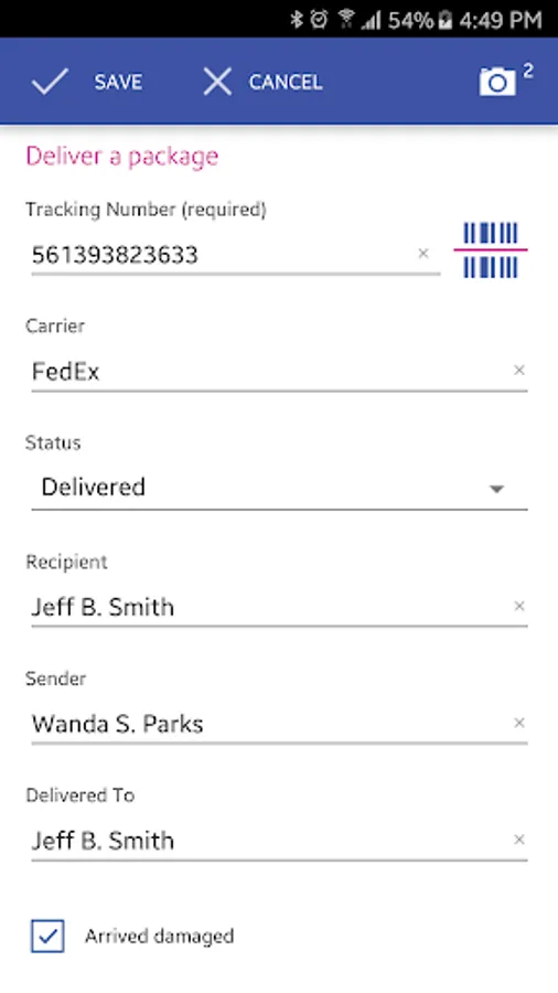 - Scan barcode information from packages as you receive them — and edit that information on the fly.