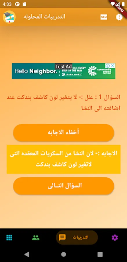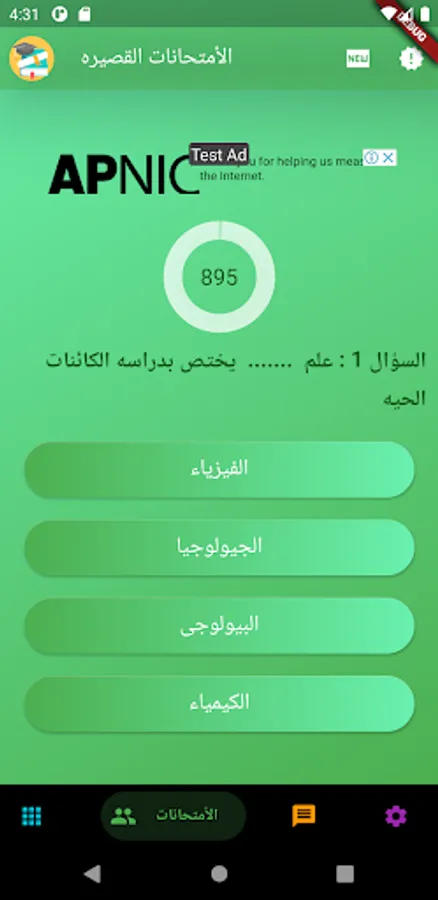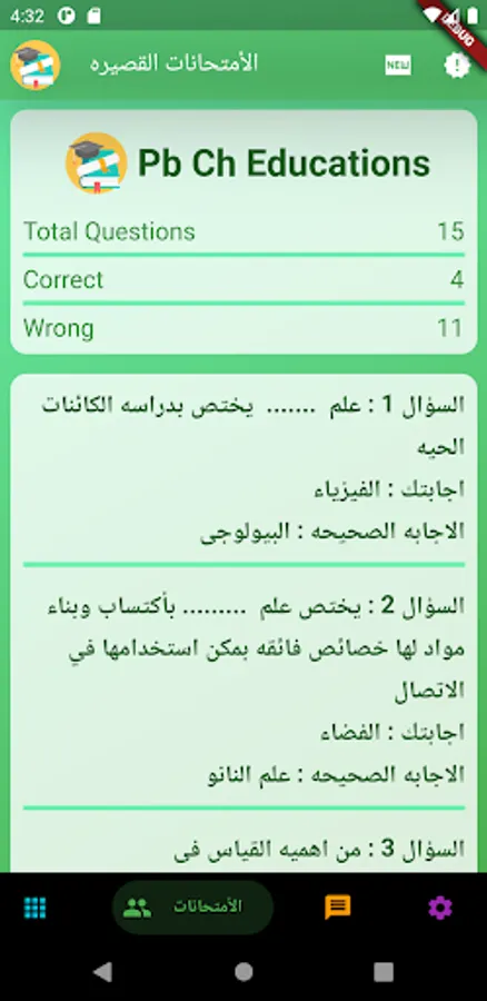 The application contains short exams consisting of 15 optional questions, right and wrong