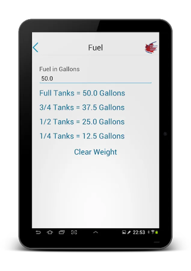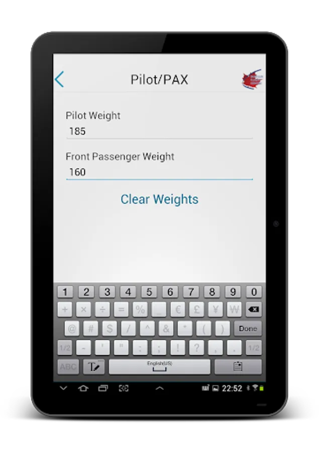 Also set up your preferences for the app on the Settings menu, including storage of your weight to make entering in pilots weight automatic.