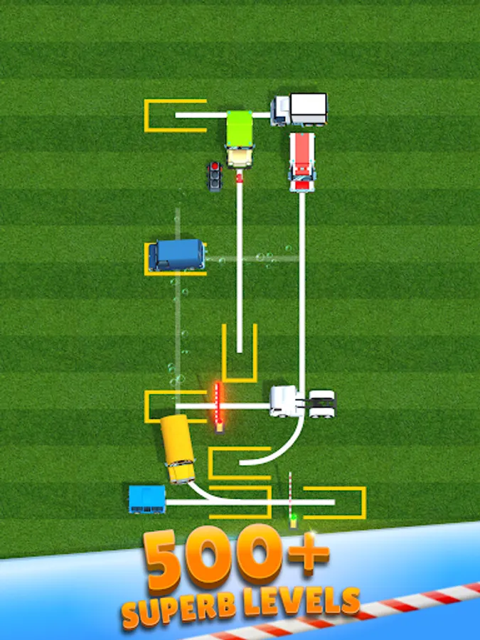 The game is both straightforward and enjoyable: select the car you want to play with, maneuver the cars by tapping, park each one in its designated slot, and complete the level! You may encounter several obstacles along the way, including barriers that prevent entry into the parking area, pedestrians to watch out for, and obstacles that can be deactivated using a button. There may also be traffic lights and trucks with long trails on your path. Be mindful of these obstacles to park efficiently.
