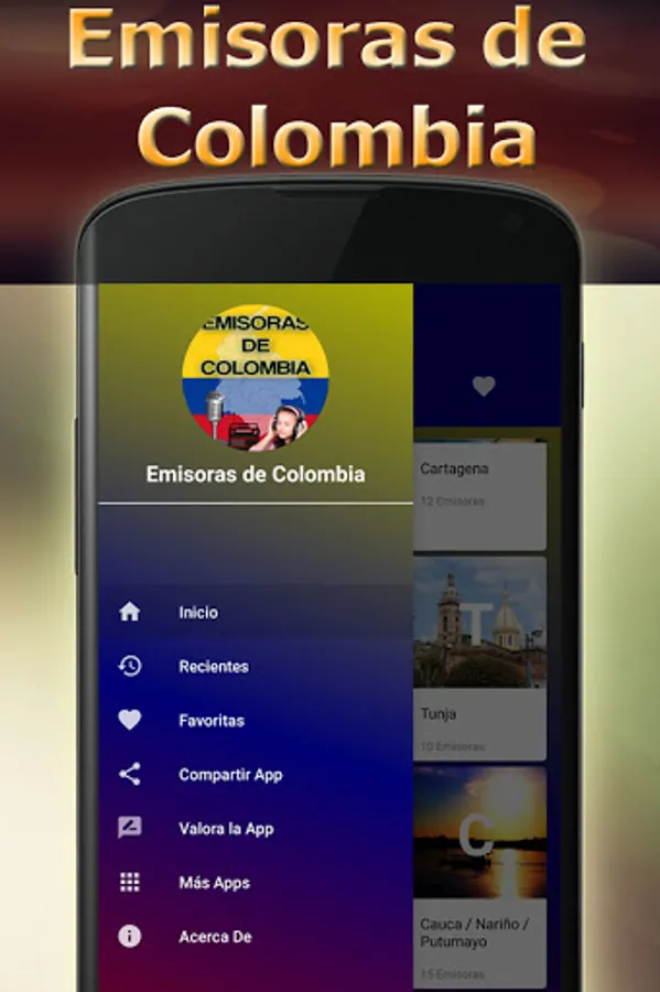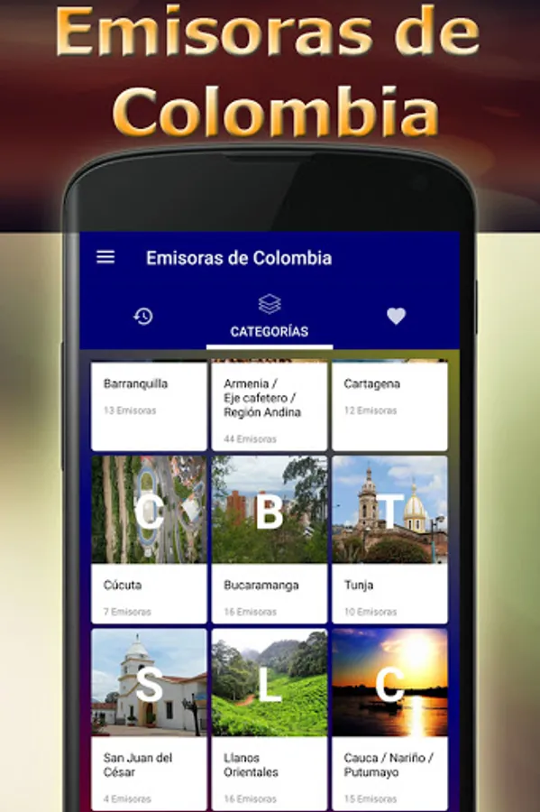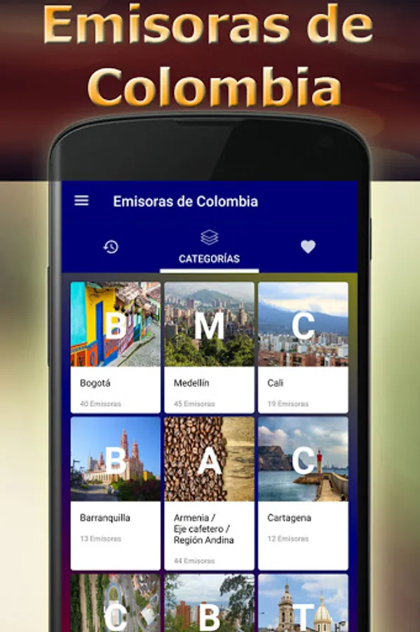 The application is categorized by cities so that you can more easily find your favorite Colombian online stations.