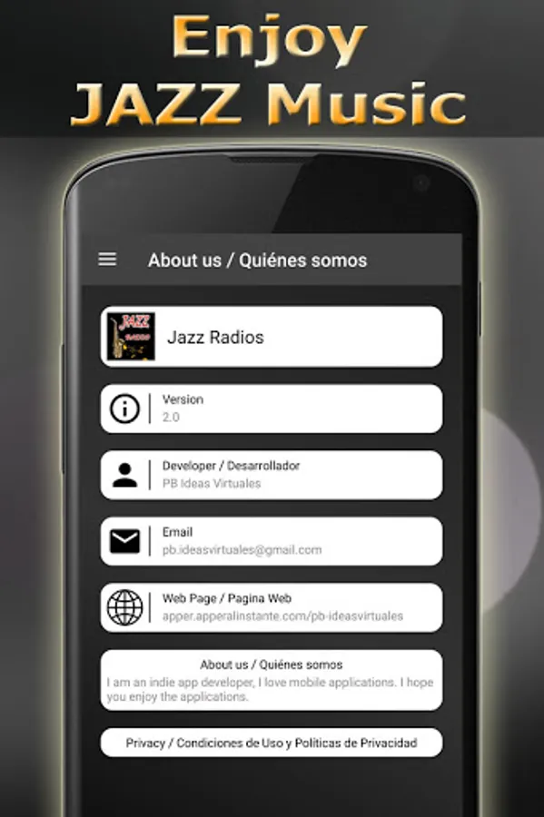Install this simple application and enjoy 24 hours of Jazz music from your smartphone no matter where you are!