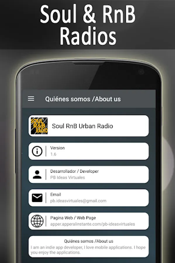 Enjoy the best Soul R&B Urban Radio stations with this easy-to-use Android app, 24/7 from anywhere.