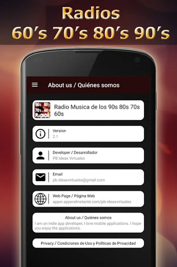 Do not hesitate, join the new trend of listening online radio from your smartphone, install this app, try it, and enjoy the best of music of the 60's, 70's, 80's, 90's today.