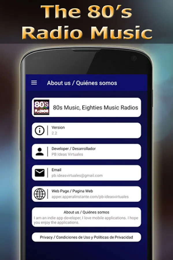 We will continually add new radios to make this app the most complete app of radios of the 80s available.