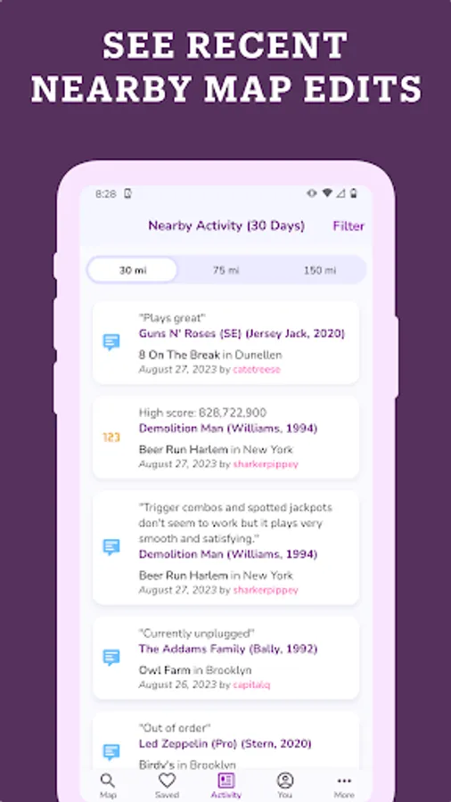 Find public places to play pinball! Founded in 2008, Pinball Map is an open source, crowdsourced worldwide map of public pinball machines. It lists over 37,000 pinball machines at over 9,000 locations.