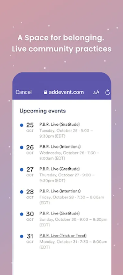 Join us for our 5X/week Live P.B.R. Meditations and practice with a community of like-hearted people.