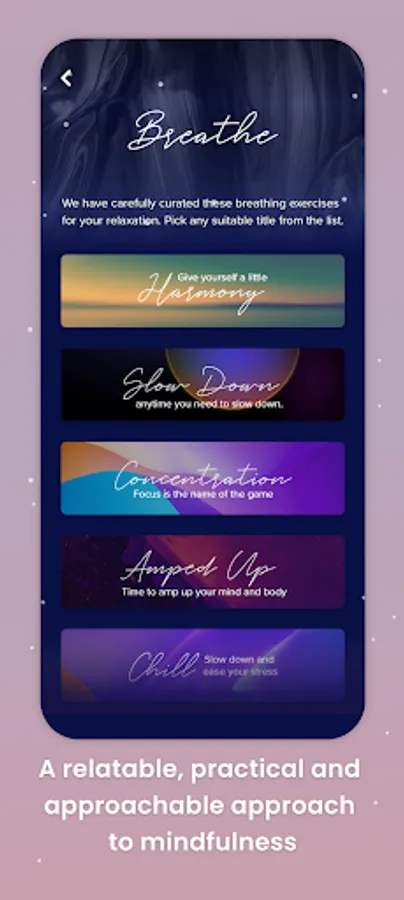 Choose from a growing catalog of guided and unguided meditations and mindfulness exercises.