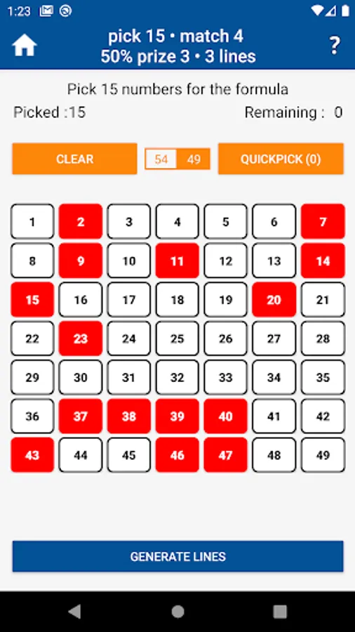 Lotto Smart, generates lines for Lottery 6/49, Lottery 6/54, Lottery 6/60, Lottery 6/90, Lottery 6/100, by combining the numbers you choose with the criterion you define.