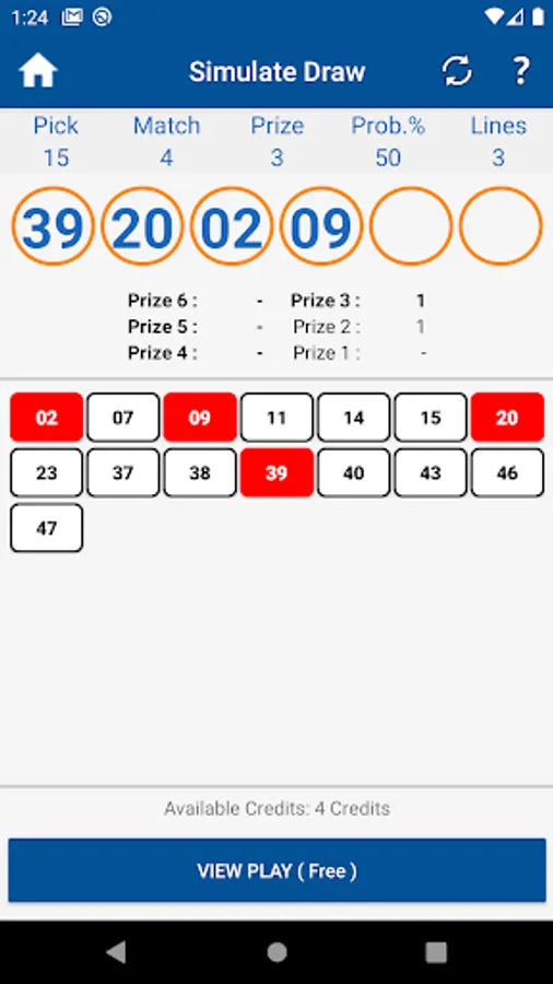 Pick, Match, Prize, Prob.%, Lines