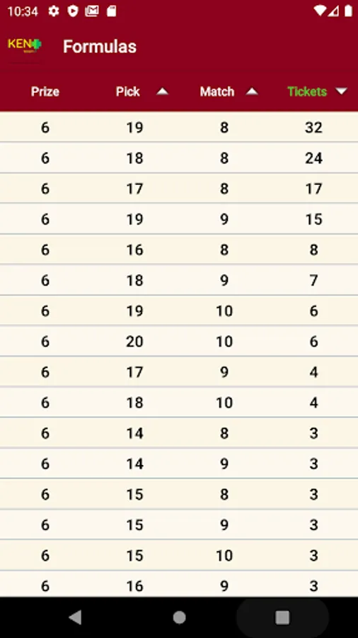 Those formulas show you how many numbers you will pick, how many of these numbers must match the drawn numbers and how many lines you have to play to win the target prize.