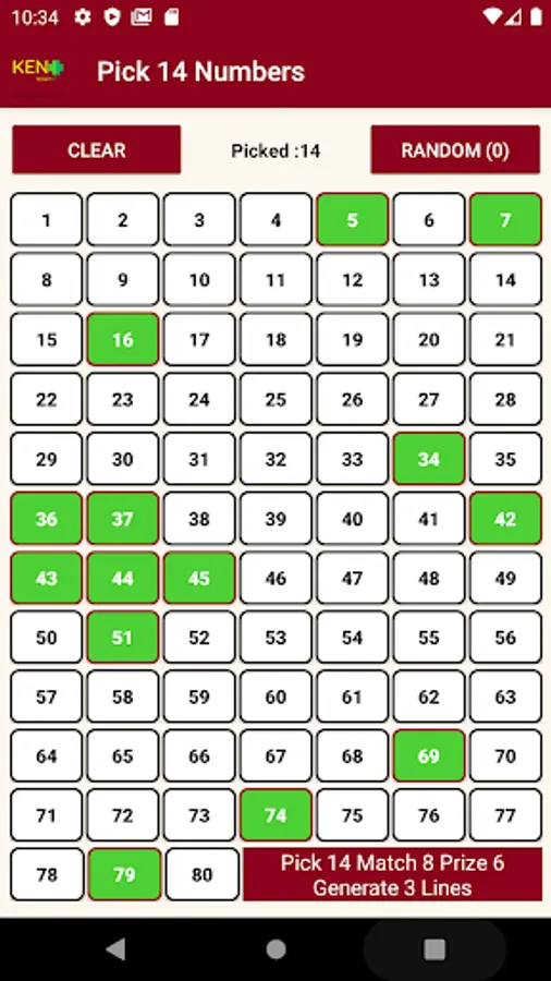 Keno Smart generates lines for you to play to win a target prize in 10 numbers per lines from 80 balls Keno game.