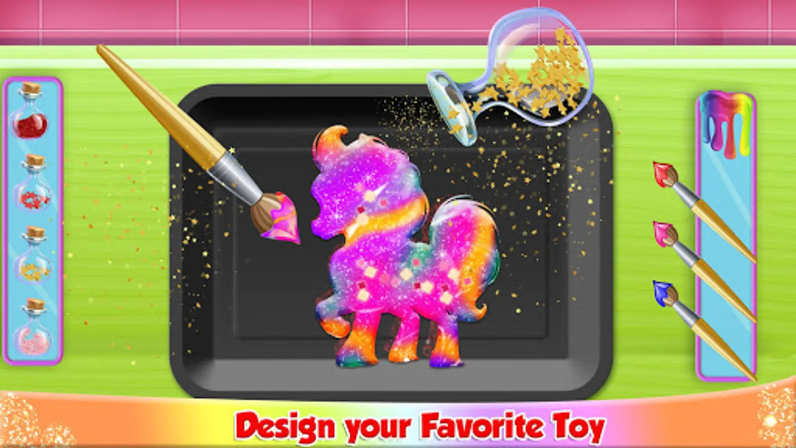 Decorate slime toys with shiny glitters, stickers & beads, if you've already played jelly toys games then you will love playing slime maker toys factory diy game in 2021. Get ready little boys and girls to play squishy magic in new toys factory games. Build slime factory toys for fairy princess and with rainbow colors.
