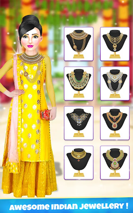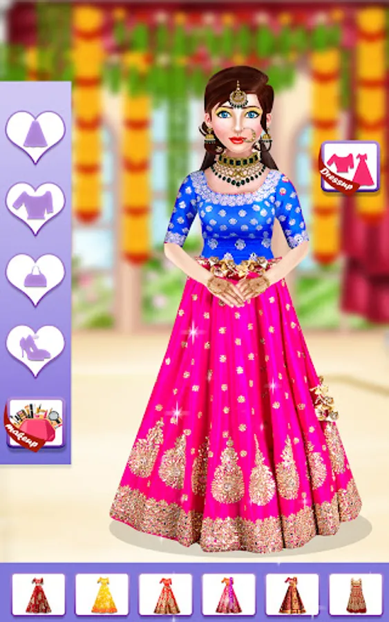 It's time to show your stylist dress up, makeup makeover creativity by designing Indian bridal dress in this girls makeover games. Play Indian princess wedding dress up games, as covet fashionistas love giving super beauty makeovers to Indian wedding salon games. Help royal brides in this Bollywood wedding games make them wear eastern dresses like saree and more. Show your real wedding designer stylist skills in this princess bridal dress up games. Make the princess look gorgeous and royal for their big day for best wedding fashion dress up games in 2022. Dress them up by using elegant and fancy Indian dresses, sarees and other sparkly accessories in your fashion spa in makeup games & dress up fashion stylist princess wedding games. Play princess wedding doll makeover and makeup games for girls. Enjoy the Indian weddings salon games for girls.