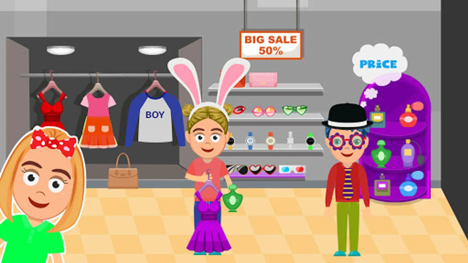 Pretend play my shopping mall is real life fun and unique game for all trendy fashion loving girls. Start role-playing as superstore manager, customer or as creative explorer to enjoy different interactive and entertaining stuff. In this pretend play game you can manage virtual supermarket and can arrange and buy food, grocery, cosmetic and dress up stuff. Imaginative & open ended game play will allow you to create your own life story. Grab gifts from gift shop, clothing store, boutique and snacks store. Enjoy this whole pretend world by just sitting in your home or hotel to explore and discover this pretend game. If you like interactive and learning pretend play games like airport, school or dollhouse then you will also enjoy role-playing story of this fun world.