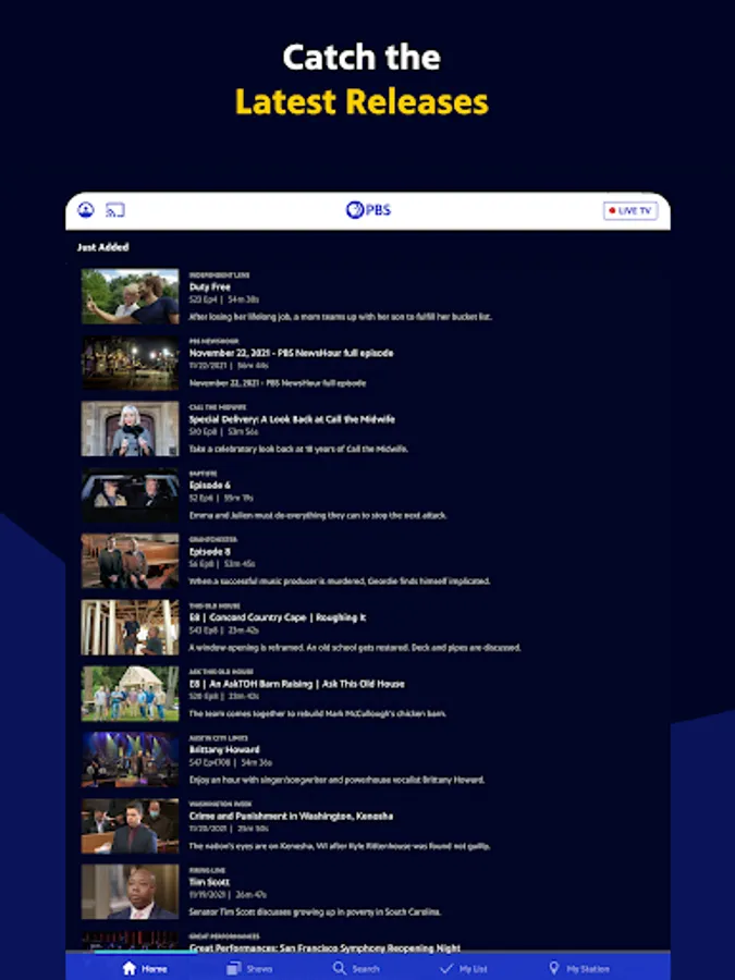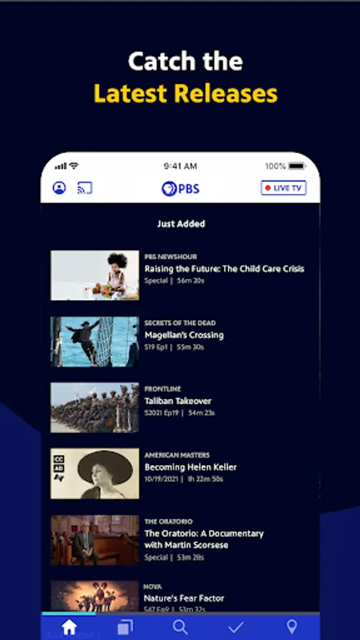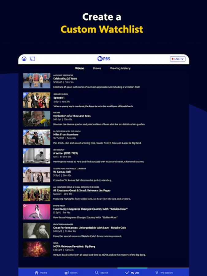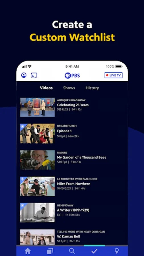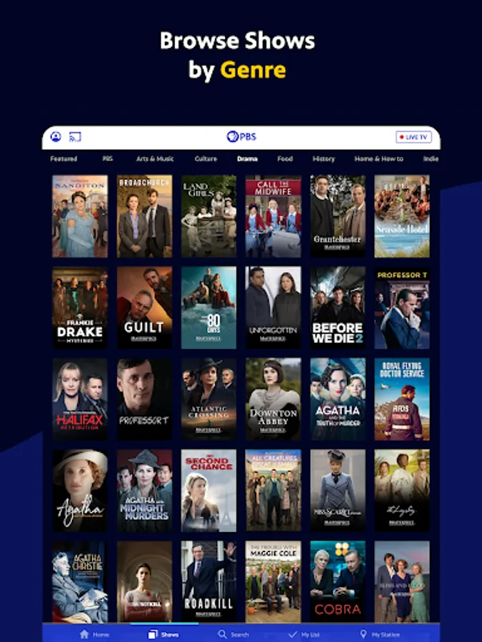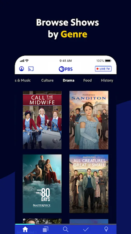- Live stream TV shows of all genres on demand in the PBS App