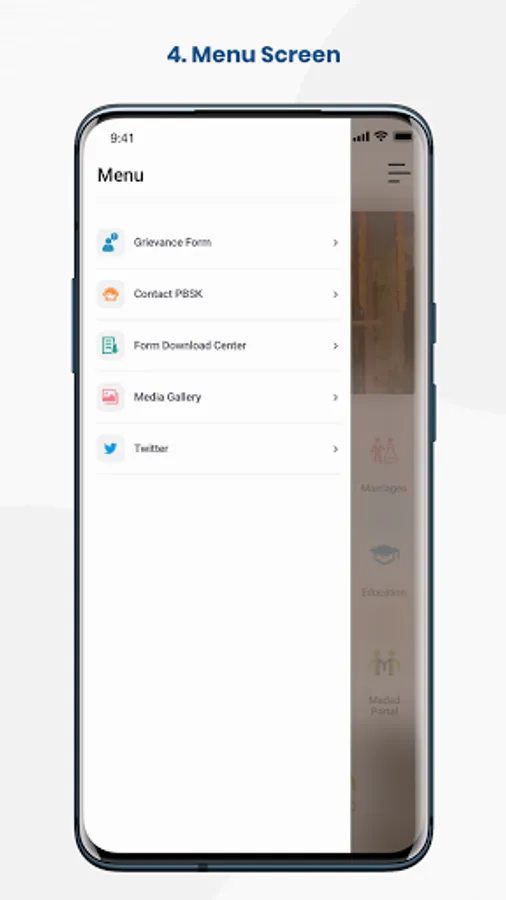 - Register grievance and send necessary documents directly to PBSK through touch of mobile buttons