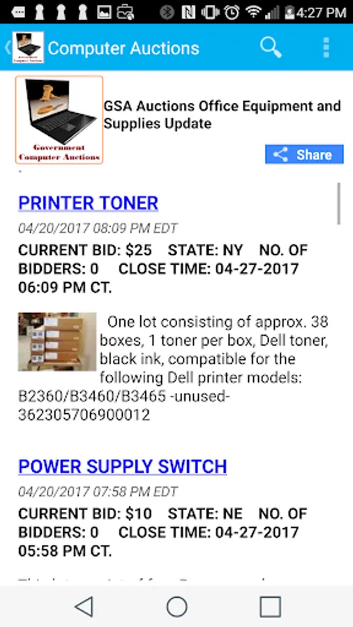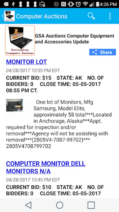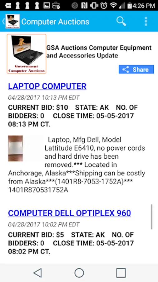 Computer, Laptop, Server, printer and other IT Tools Auctions listing by US Government and GSA