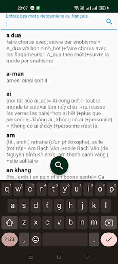 The application "Vietnamese French Pronunciation and Learning Dictionary" is a useful tool for those who learn and enjoy the Vietnamese language. Aiming to help users improve their pronunciation, expand their vocabulary, and strengthen their communication skills, the app provides a hands-on and interactive learning experience.