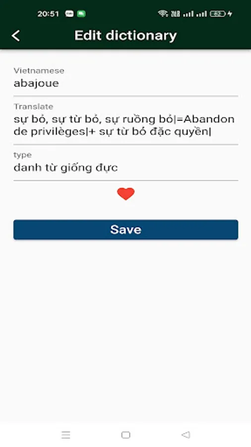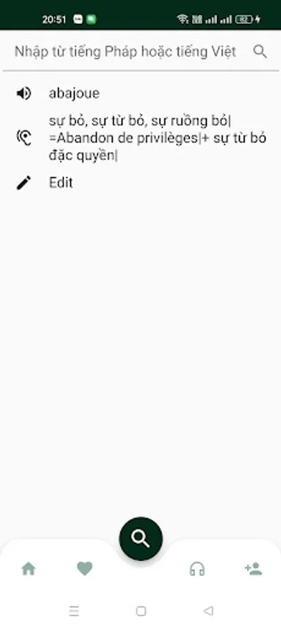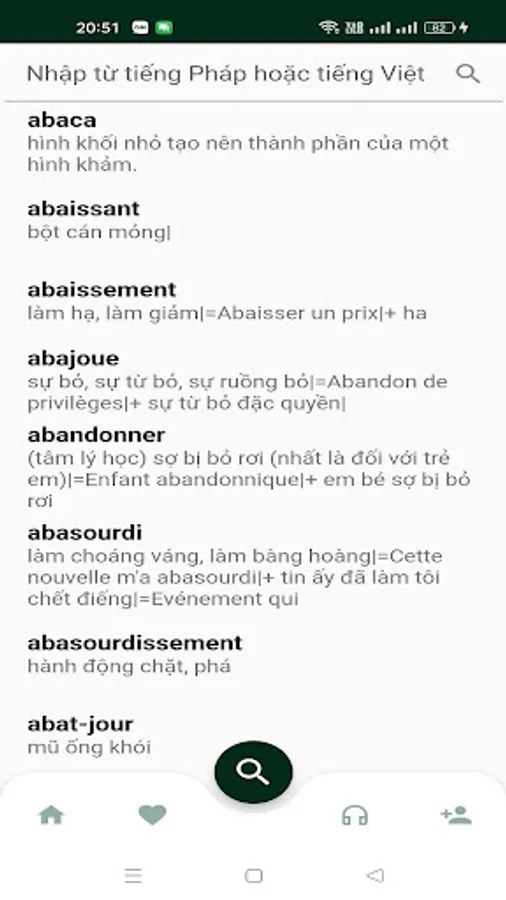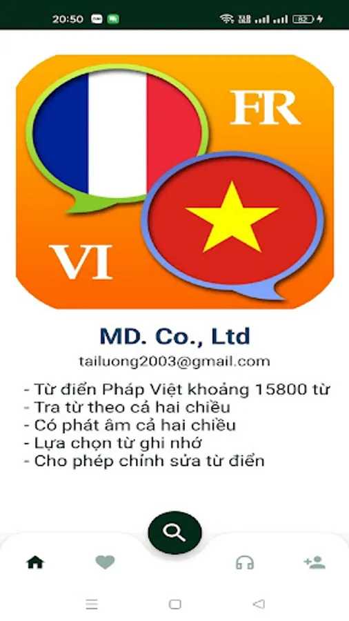 The application "French-Vietnamese pronunciation and learning dictionary" is a useful tool for those who are learning and loving French. With the goal of helping users improve pronunciation, expand vocabulary and enhance communication, the app offers a convenient and interactive learning experience.