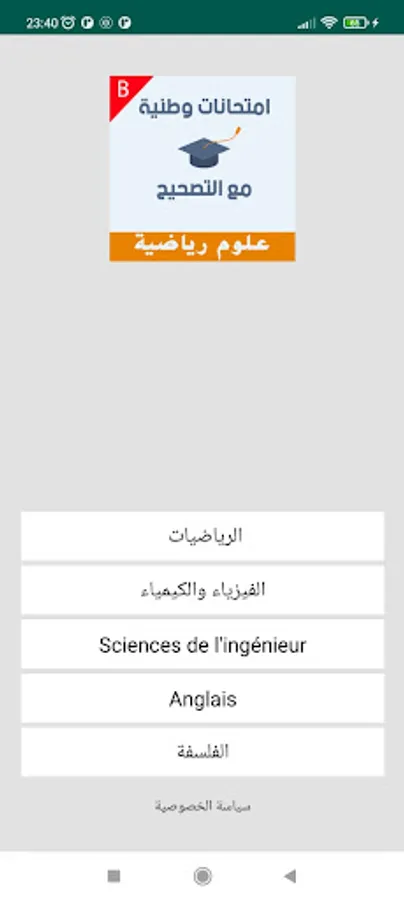 In this application, there are national exams with correction for each of the subjects of Physics, Engineering Sciences, Mathematics, English Language and Philosophy, the Mathematical Sciences course