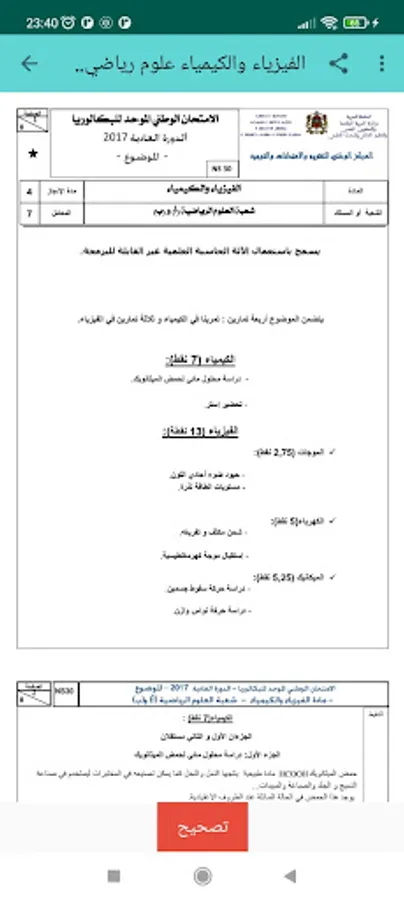 National exams for physics and chemistry, the second baccalaureate, the course of mathematical sciences, with the correction of the regular session and the remedial course.