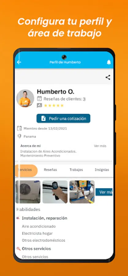 Configure your work area indicating your usual location and the kilometers around it where you will carry out your work. If you only provide online services, indicate a lot of kilometers!