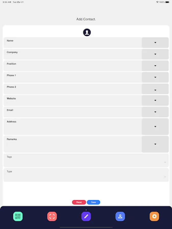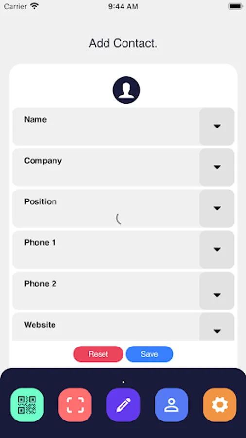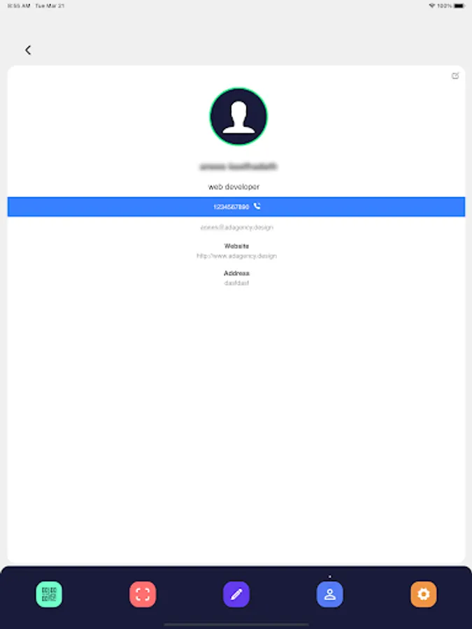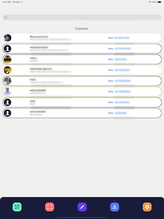 App to scan contact QRcode and collect data from Business card using camera and save for future use.