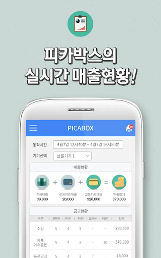 Anytime, anywhere to store management Picard Pro you can check the status of real-time and store and PICABOX