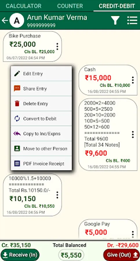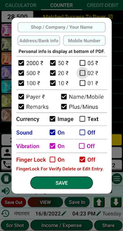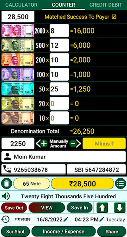 Cash Calculator Jama Udhar Book Rojmel GST Calculator Credit Debit Book Loan calculator EMI Only For Indian currency denominations Tally My cash Share counting details to any social media and app Get total in words also (Indian style) Can save all data as a PDF file or Excel file and share it also. export Backup and restore it also.