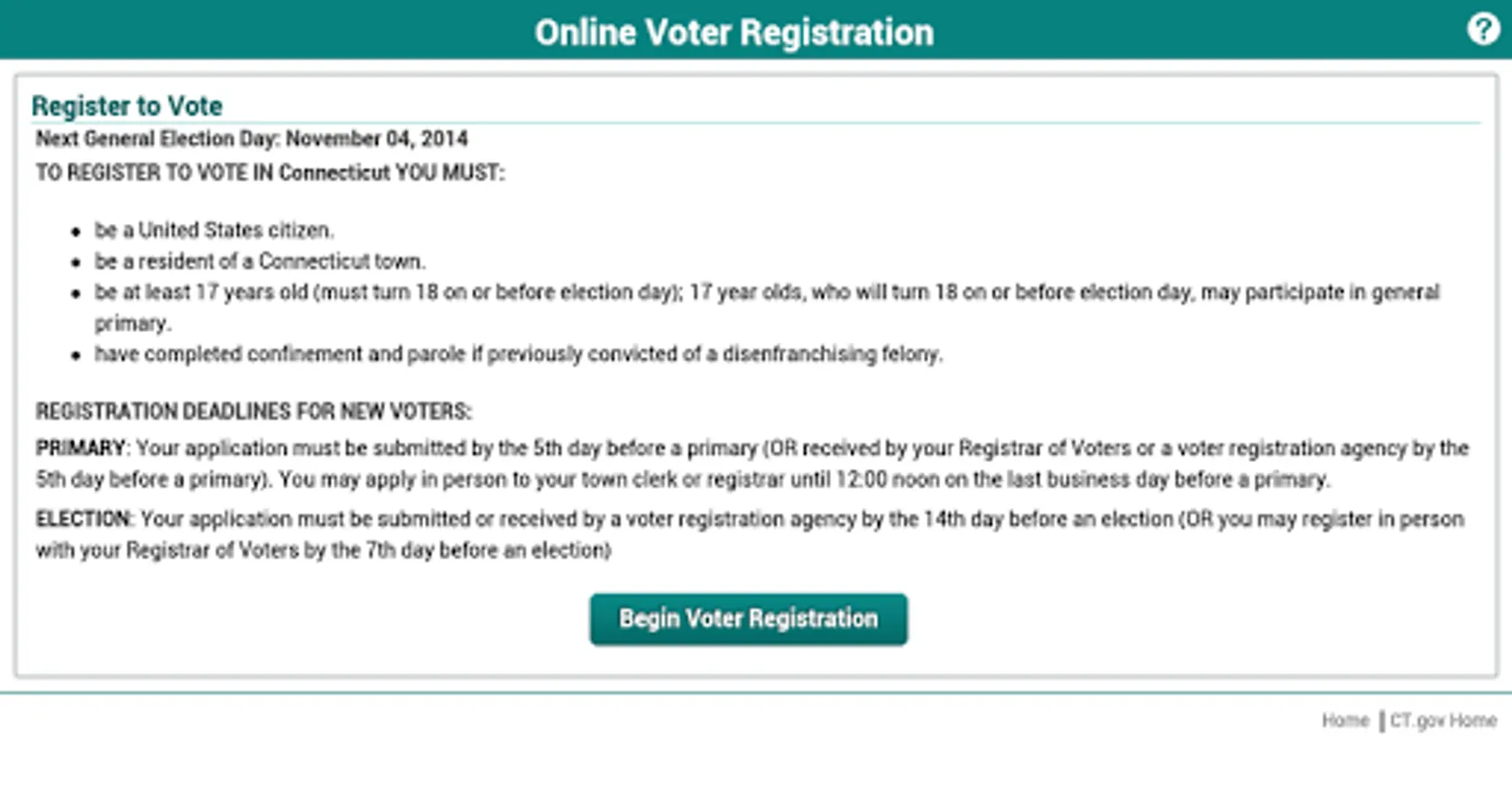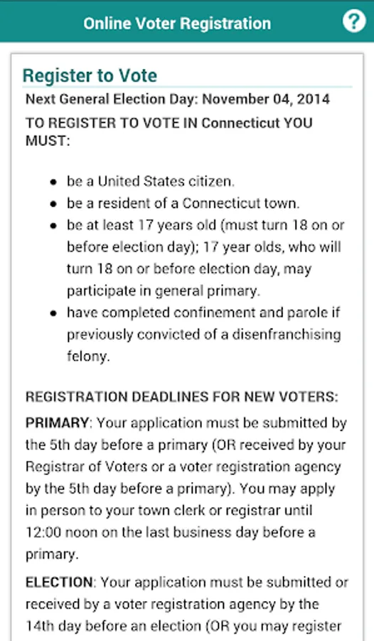 *BRAND NEW IN 2014!* EASILY REGISTER TO VOTE FOR ALL CT ELECTIONS RIGHT FROM YOUR ANDROID DEVICE