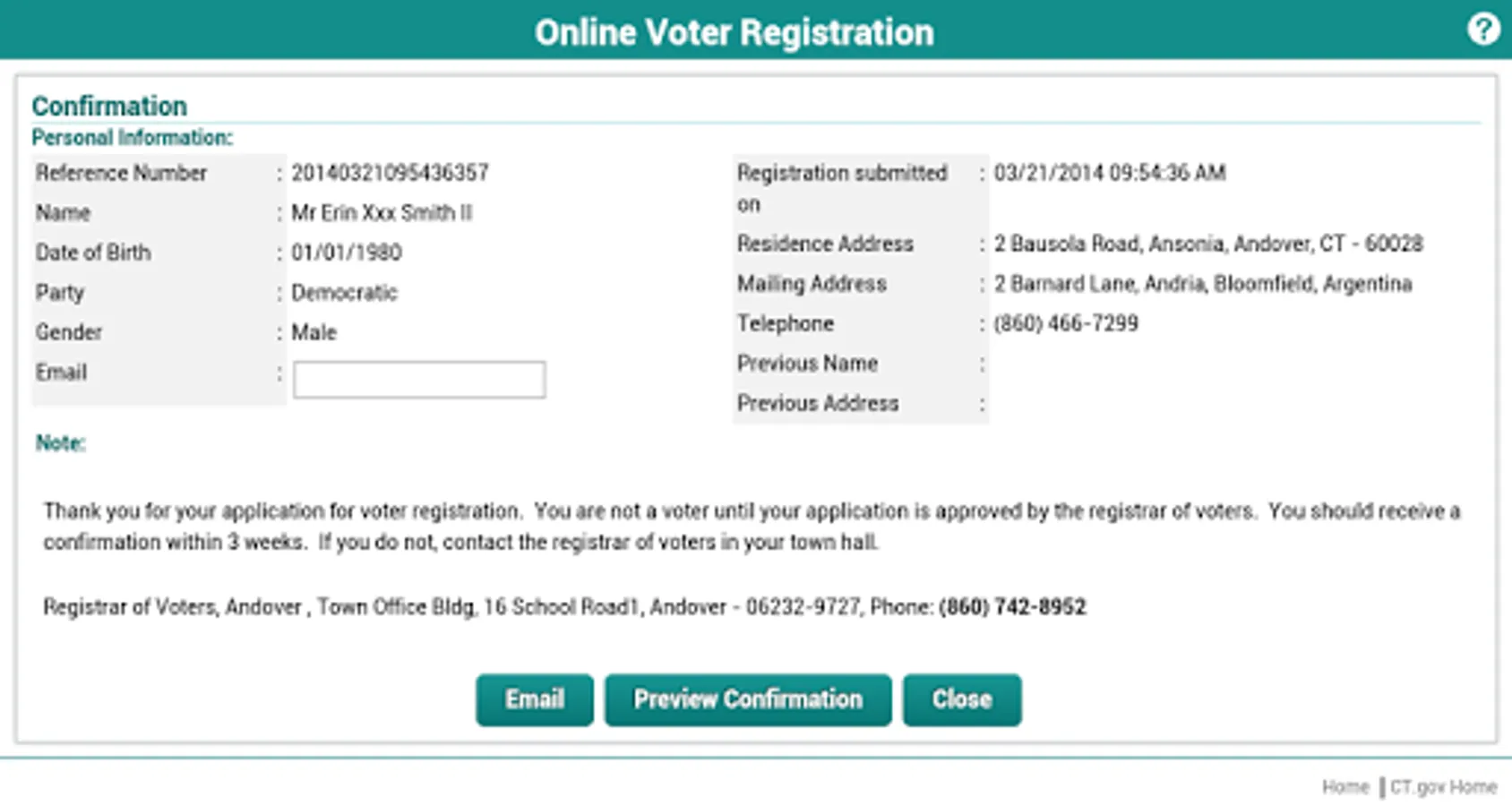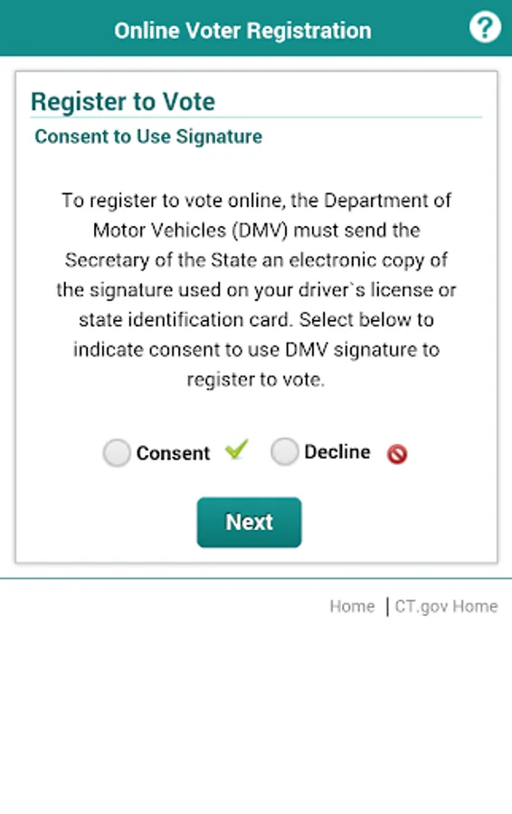 Experience a totally new way to register to vote in Connecticut. With just a valid CT DMV ID you will be able to register to vote in the next CT Election. Designed and developed by the Secretary of the State’s Office, Connecticut residents will now have an easy way to update and maintain their voter registration information with this app.
