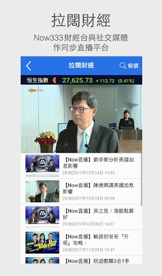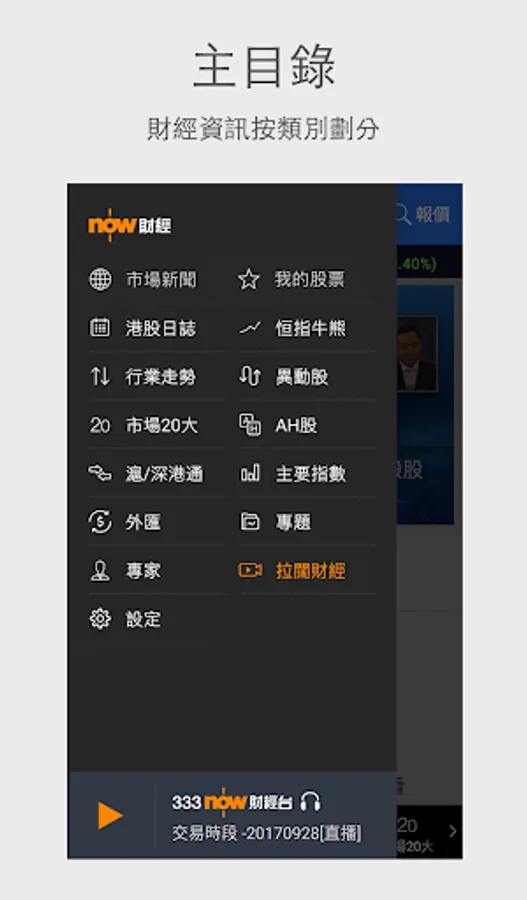 - 多個 Now財經台新聞及節目,提供專業觀點及多角度分析,股樓一手掌握
