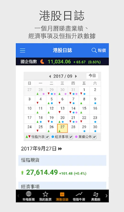 ◎港股日誌–月曆方式呈現經濟事項及業績公布日期