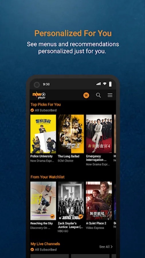Remarks: Content on mobile devices (including mobile phones and tablet PCs) may differ from that available through your Now TV set top box due to licensing limitations. Now Player provides notifications of service updates and other promotional items. Notifications may be turned off in Settings.
