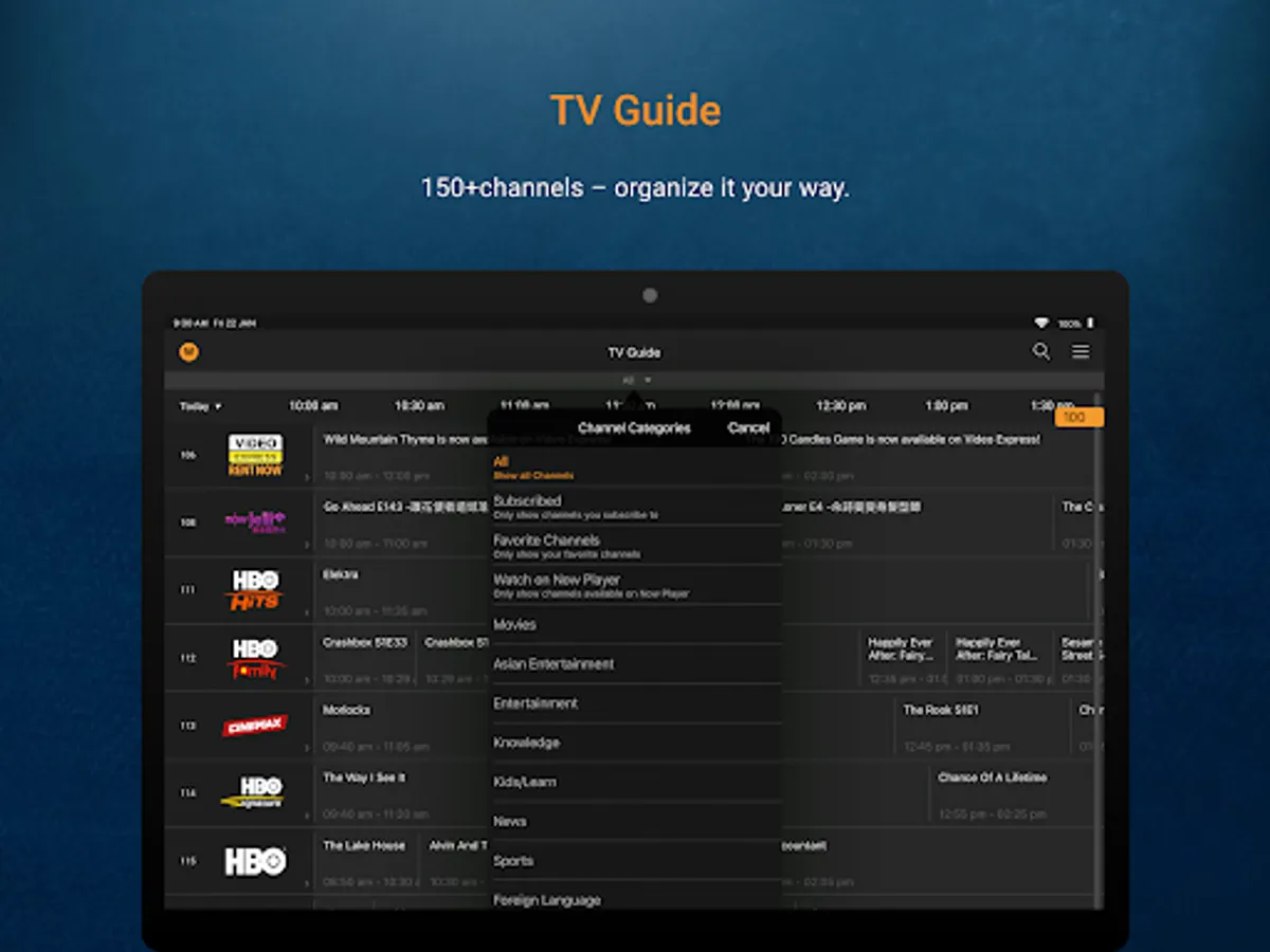 Popular movies and shows from your channel subscriptions will be added to the home screen, you’ll see rows of subscribed programs marked with a tick [√].