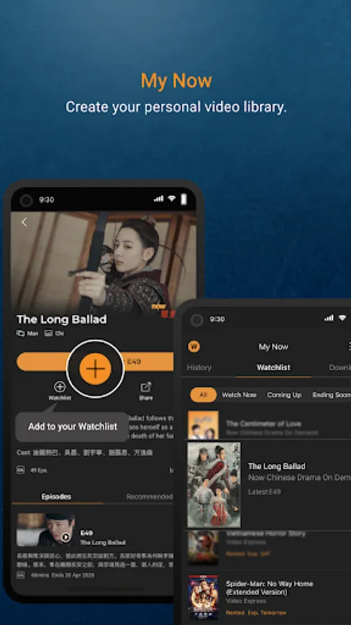 It’s your personal library helping you organize all your favorite programs. Get personalized recommendations, view your Watchlist, History, Saved or Rented items, scheduled recordings and manage downloads all in one place. For UX3 interface users, My Now syncs with your set top box.