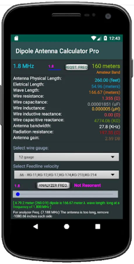 The Dipole Antenna Calculator Pro App will calculate all of the antenna requirements by