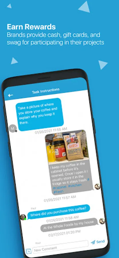 If you participate in an EthOS study, companies will provide you with a list of tasks to complete on your phone through the EthOS app. Most of the tasks involve taking pictures and videos, but you may also be asked to complete range questions (ex: On a scale of 1-10 how much did you enjoy your experience), single select questions (ex: Which of following grocery stores do you shop at most often?), and open-ended text-based questions (ex: How would you describe your experience using the new product?).