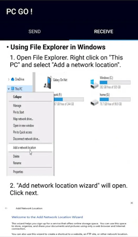 To access your data on PC use windows explorer or type the generated URL into your favorite browser.