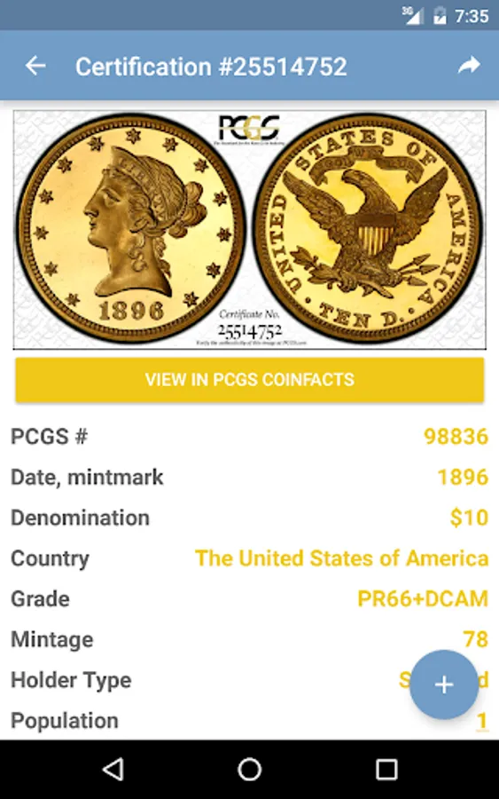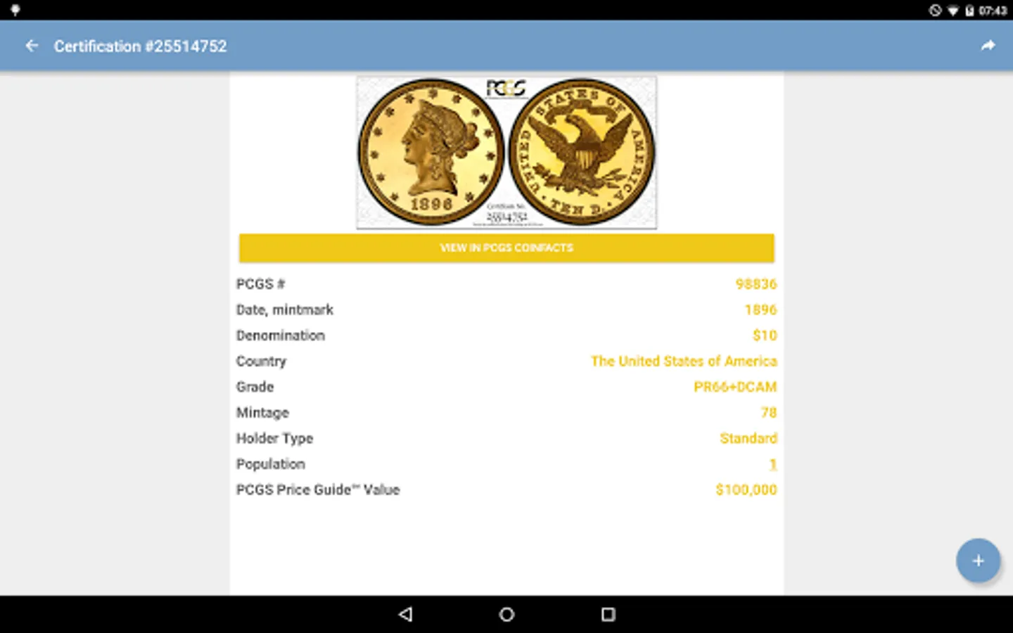 • Access to the coin’s holder type, PCGS population, Price Guide value and more
