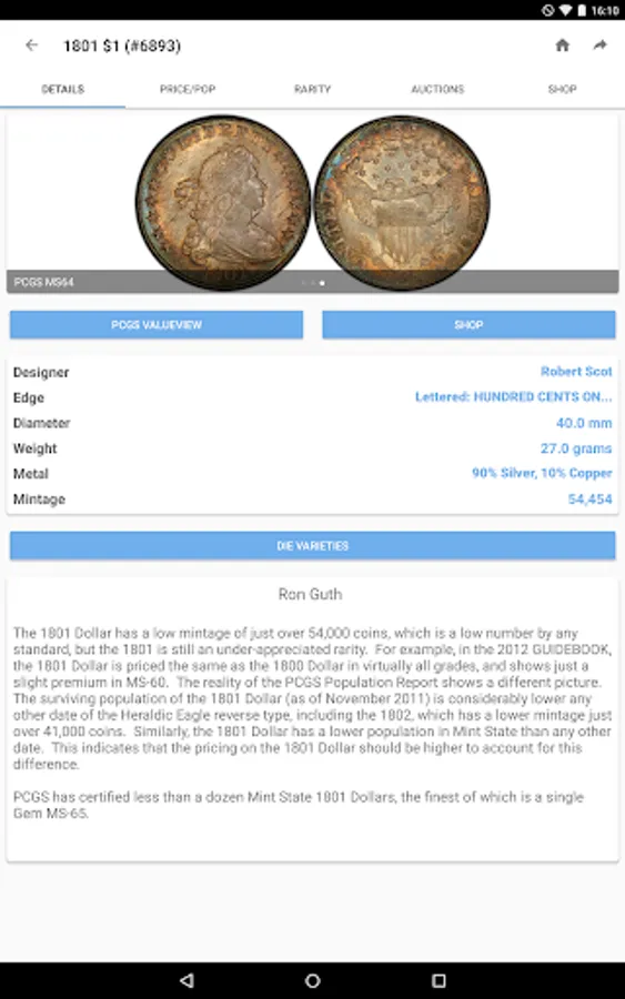 U.S. Coin collectors finally have the resource needed to make informed numismatic buying, selling and trading decisions, thanks to the PCGS CoinFacts mobile app. The world’s largest encyclopedia of U.S. coins now fits in your pocket and is 100% free to use. Download this coin collecting mobile app today to access coin values, images, narratives, auction prices realized, and more for over 39,000 U.S. coins.