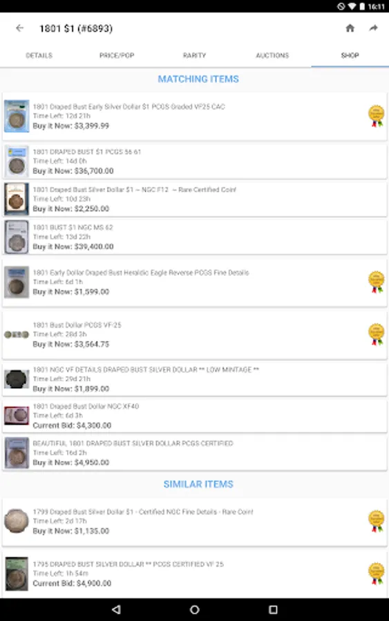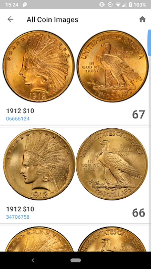 * Barcode scanning for coins graded by PCGS or NGC provides instant coin look-up functionality.