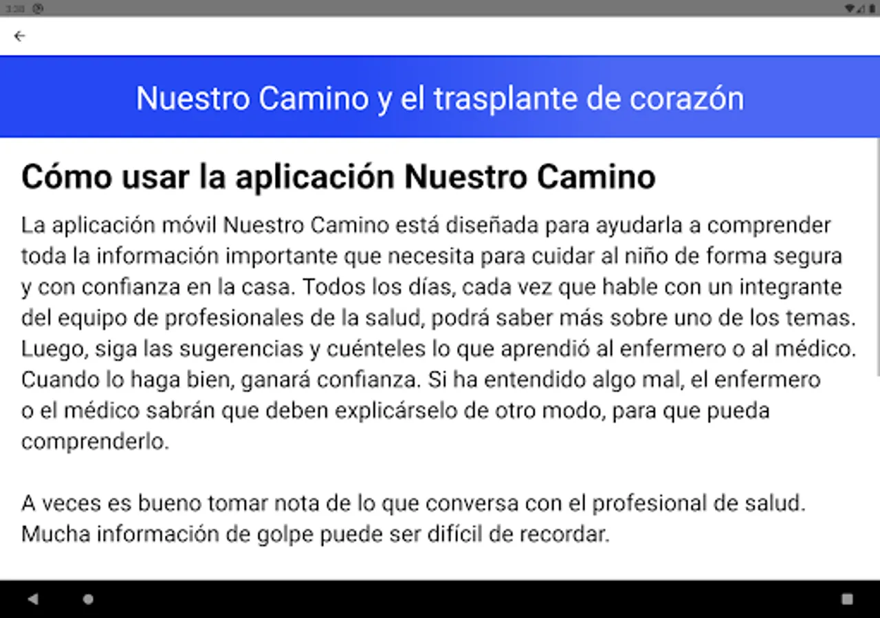 The Emily Center at Phoenix Children’s Hospital presents Our Way and heart transplant so that families with children who need a heart transplant know how to identify what they need to know before leaving the hospital. Parts of this application could be used in clinic and emergency room consultations.