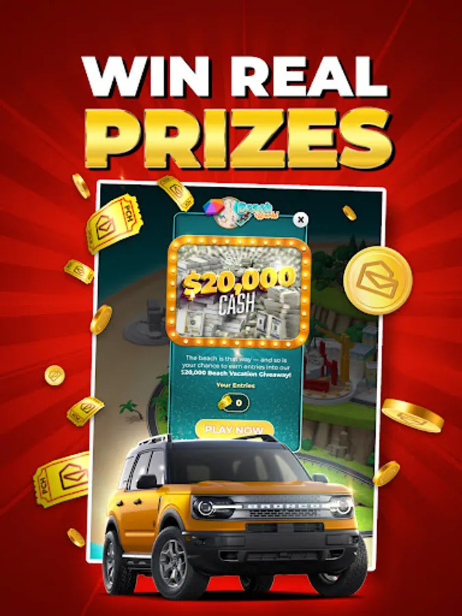 Get ready to test your skills with new and improved fun mini games for real prizes as rewarded play takes new meaning with PCH+! Prepare to play and win chances for real rewards! Enter giveaways with quick games and exciting ways to win prizes at every turn. PCH+ lets you play mini games and score big with tokens that help you claim rewards.
