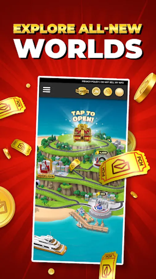 Experience the new PCH+ World Map where you have the power to choose your own path at earning real prizes!! Select different themed Sweepstakes Worlds, each with their own unique experiences and prizes. Complete each world to unlock treasure chest rewards for more prize entries and other giveaways!