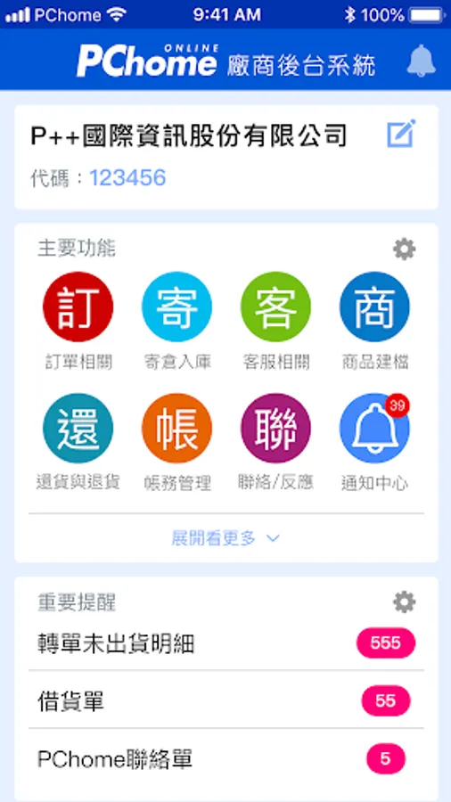 PChome manufacturer back-end system (P++ family), looking forward to the instantness of mobile devices, let the partners use the APP to query various business information, in order to manage orders, handle consumer questions, query various announcements and other functions.