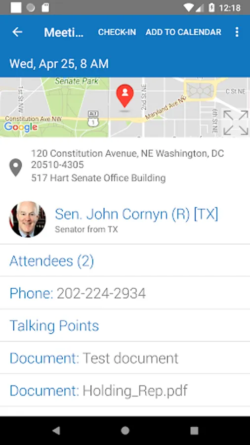 -Notes section for taking notes about meetings, reference talking points, and electronically pass along leave-behinds to congressional staff