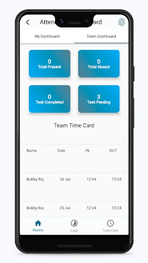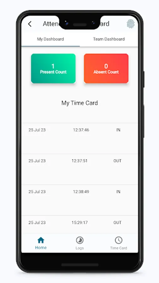 3. Staff can see their attendance data on the dashboard also the attendance logs option to check all logs.
